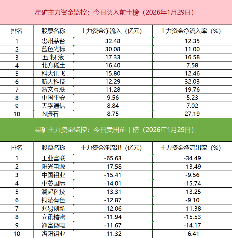 主力资金流出前十的个股所属板块较为分散,工业富联净流出居首。