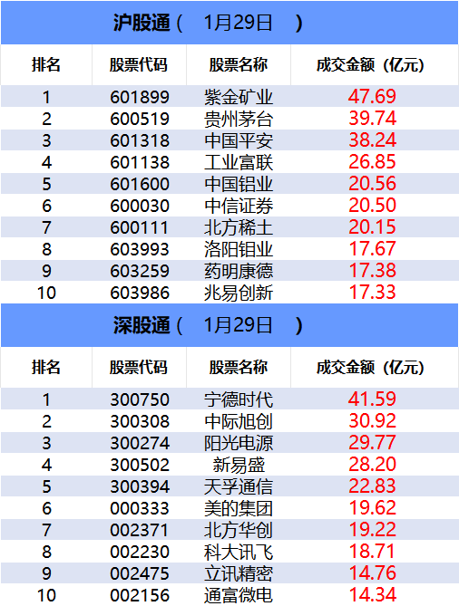 从沪股通前十大成交个股来看,紫金矿业位居首位;贵州茅台和中国平安分居二、三位。