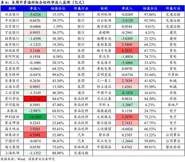 北上资金净流入放缓,配置结构偏向成长,关注流动性结构松动。近两周以来北上净流入的规模较低,外资偏好组合的净流入强度走弱亦表明当前北上净流入意愿已开始放缓。更多的在于结构性的配置为主,前期涨幅较大的食品饮料北上资金存在流出扩大的迹象;而电子、计算机、传媒等成长板块成为北上流入放缓当中的增配方向。此外,从资金面看,北上放缓,ETF流出边际上升,关注流动性结构的松动。