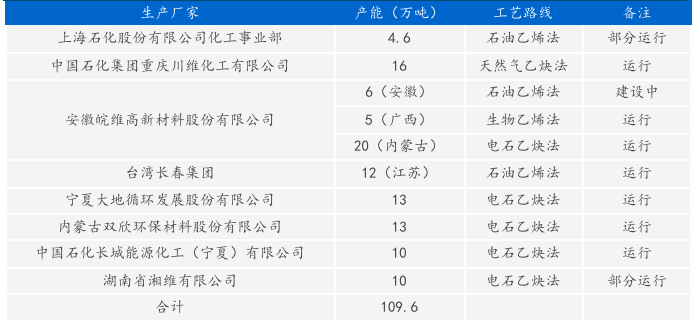 PVA也叫聚乙烯醇,其制作方法多样,下游应用也多种多样。PVA的制作方法主要有电石法、乙烯法和天然气法,原材料有醋酸乙烯、醋酸和煤炭。PVA可以制成维伦纤维,用于合成生产纤维;也可以加工成胶粘剂,作为建设用胶、白乳胶等;作为纺织浆料时用于浆纯涤或涤棉纱;还可以以PVB的形式作用于玻璃中间膜;其他可以作为生物降解PVA薄膜等。全球聚乙烯醇(PVA)生产主要集中在中国、日本、美国等少数几个国家和地区,总装置产能约185万吨,2022年实际产量约130万吨左右,其中亚太地区是主要生产地区,占世界总产量80%以上。全球具有代表性的企业主要有日本可乐丽株式会社、日本积水化学工业株式会社、日本合成化学工业株式会社、安徽皖维高新材料股份有限公司、中国石油化工集团有限公司、台湾长春集团、内蒙古双欣环保材料股份有限公司和宁夏大地循环发展股份有限公司等。国内的企业多数是电石法生产PVA,海外多数是乙烯法生产。目前因为危机,乙烯价格暴涨超50%,乙烯法大面积亏损,行业内乙烯法装置面临着关停风险。一旦关停,将影响行业近40%的产能,而传统电石法企业将受益。