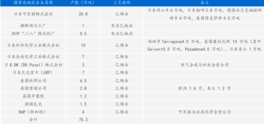 国内和海外PVA产能情况 |