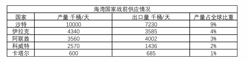 因运输受阻,库容告急,伊拉克、科威特、卡塔尔、沙特、阿联酋都已宣布减产。3月12日,IEA月报指出,海湾国家的石油产量已经减少至少1000万桶/天,相当于全球原油供应量的约9%。若出口不恢复,还会有更多产量被迫减产。若冲突很快结束,在油井和配套设施没有受到物理损坏的前提下,复产可能需要数天至数周时间,主要取决于储层情况,若油井关停的时间较长,悲观的话复产可能需要数月。