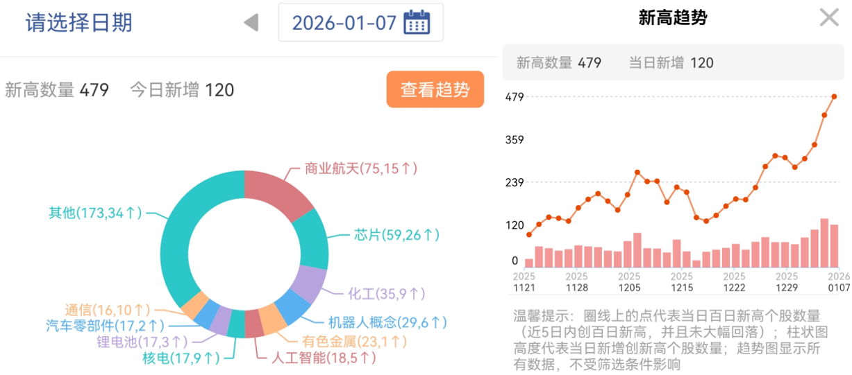 从百日新高去看,板块新高数量前4:商业航天>芯片>化工>机器人