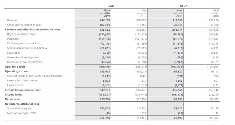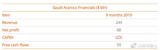 在刚刚公布的沙特阿美公司2019年第三季度季报来看,公司前9个月净利润达到680亿美元,销售收入2440亿美元,自由现金流为590亿美元。