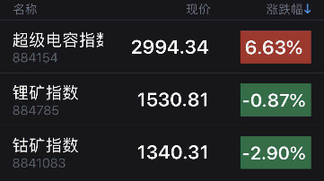 超级电容相关概念股受到了巨大提振,截至2月24日午间收盘,超级电容指数大涨6.63%,报2994.34点,其中新筑股份、黑牡丹、新宙邦、铜峰电子、凯恩股份涨停,其他成分股也都有不错涨幅。