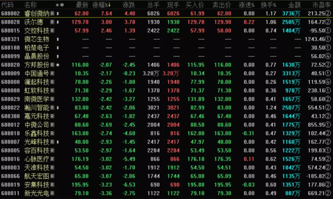 A股市场上,三大股指全线低开。上证指数低开1.63%、深证成指大幅低开2.36%,创业板指低开2.16%。科创板股票除了睿创微纳、沃尔德和交控科技高开以外,其他科创板股票全部低开超2%。不过开盘后,各主要股指有所回升;科创板股票迅速走高,几乎全部翻红。截至发稿,睿创微纳接近涨停,瀚川智能涨超10%。