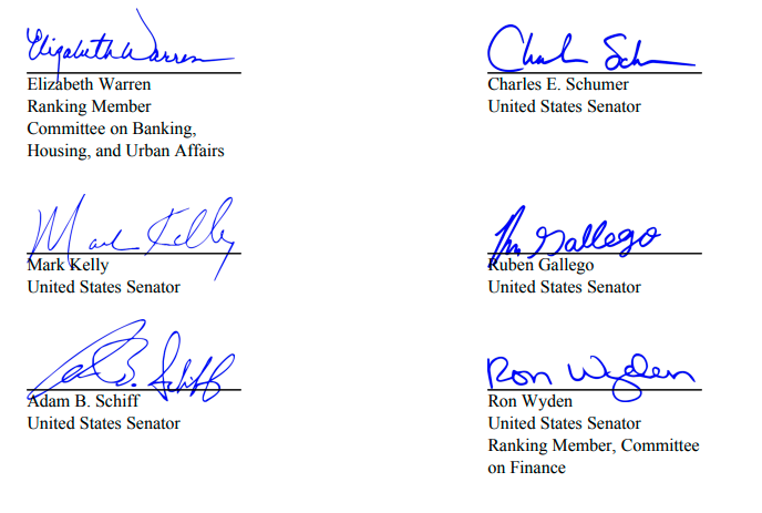 多位民主党参议员联名致信SEC