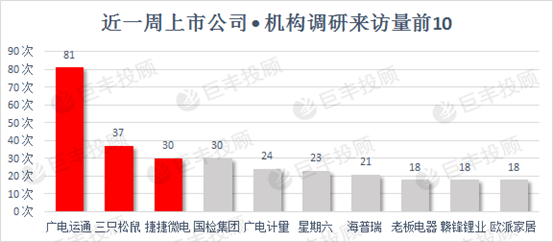 从个股数据看,广电运通、三只松鼠、捷捷微电等十家公司受机构调研次数最多,最受关注。