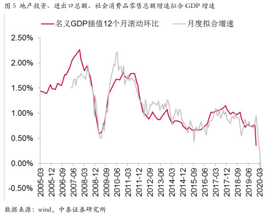 逻辑上,这三个指标分别代表投资、出口、消费三驾马车。值得一提的是,用房地产投资代表固定资产投资总规模,能得到更好的拟合效果,尤其在经济拐点的地方更灵敏。这是因为在总投资中,基建投资是逆经济周期的,制造业投资是顺周期但滞后的(即经济拐点出现后其才出现拐点),而房地产投资与经济周期的同步性和灵敏性最高。