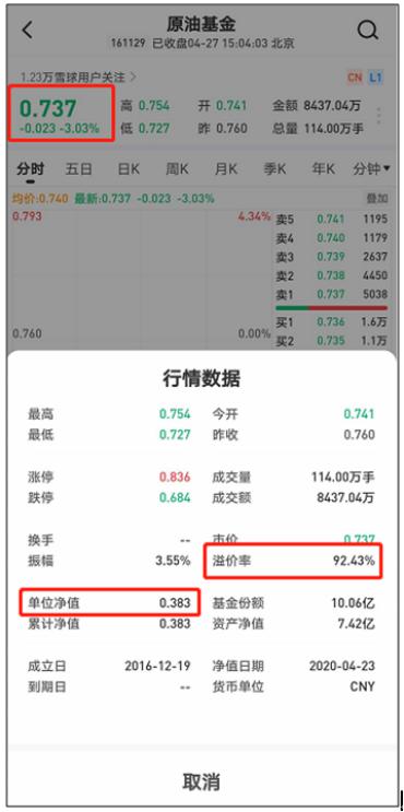 以原油基金为例,该只基金目前单位净值只有0.383元,但由于QDII额度紧张、资金抄底热情较高,部分资金就愿意以更高的价格买入并持有。