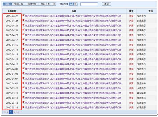 以南方原油为例,该只基金从3月12日至今,已经密集发布20条提示场内交易价格波动等风险的公告。