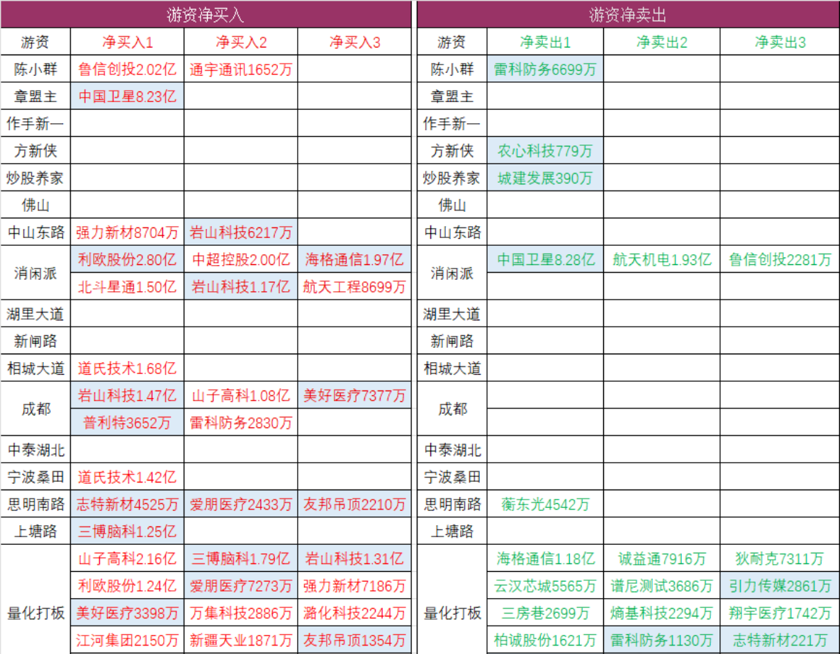 游资动向: