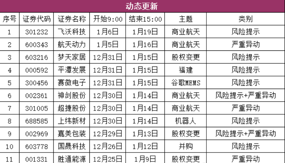二、异动监管(动态更新)