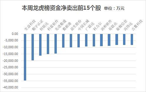 个股龙虎榜净卖出金额居前的15只个股分别为: