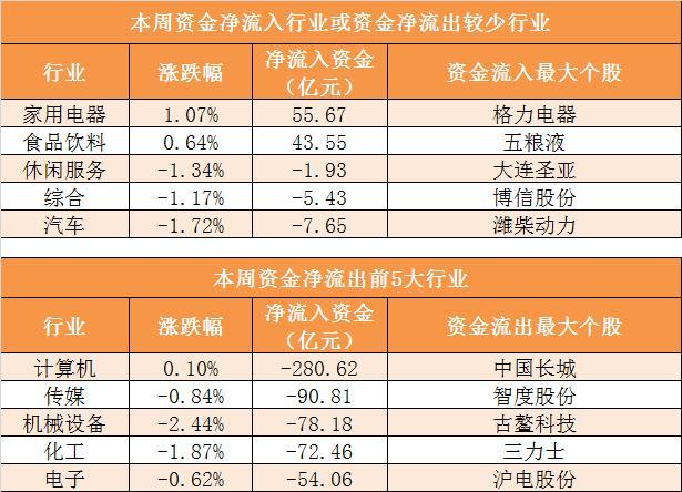 28个申万一级行业中,本周2个行业实现资金净流入,其中家用电器行业净流入55.67亿元居首。