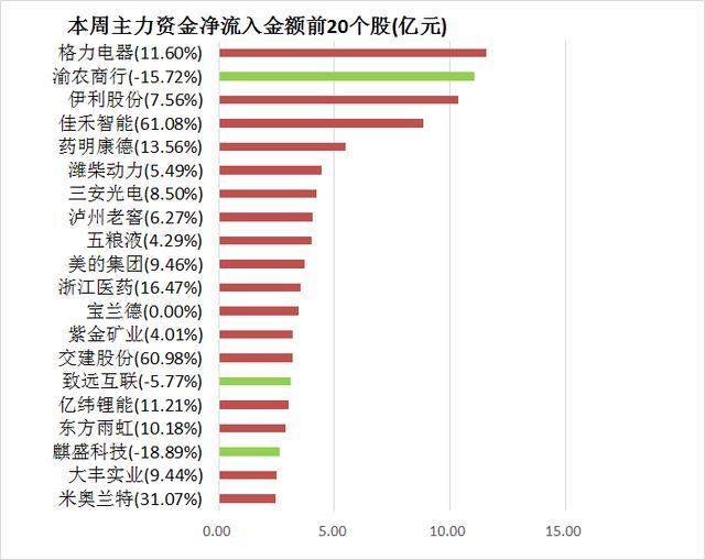 (注:此表为主力资金净流入统计,与上一表格及下一表格中统计口径均不同)