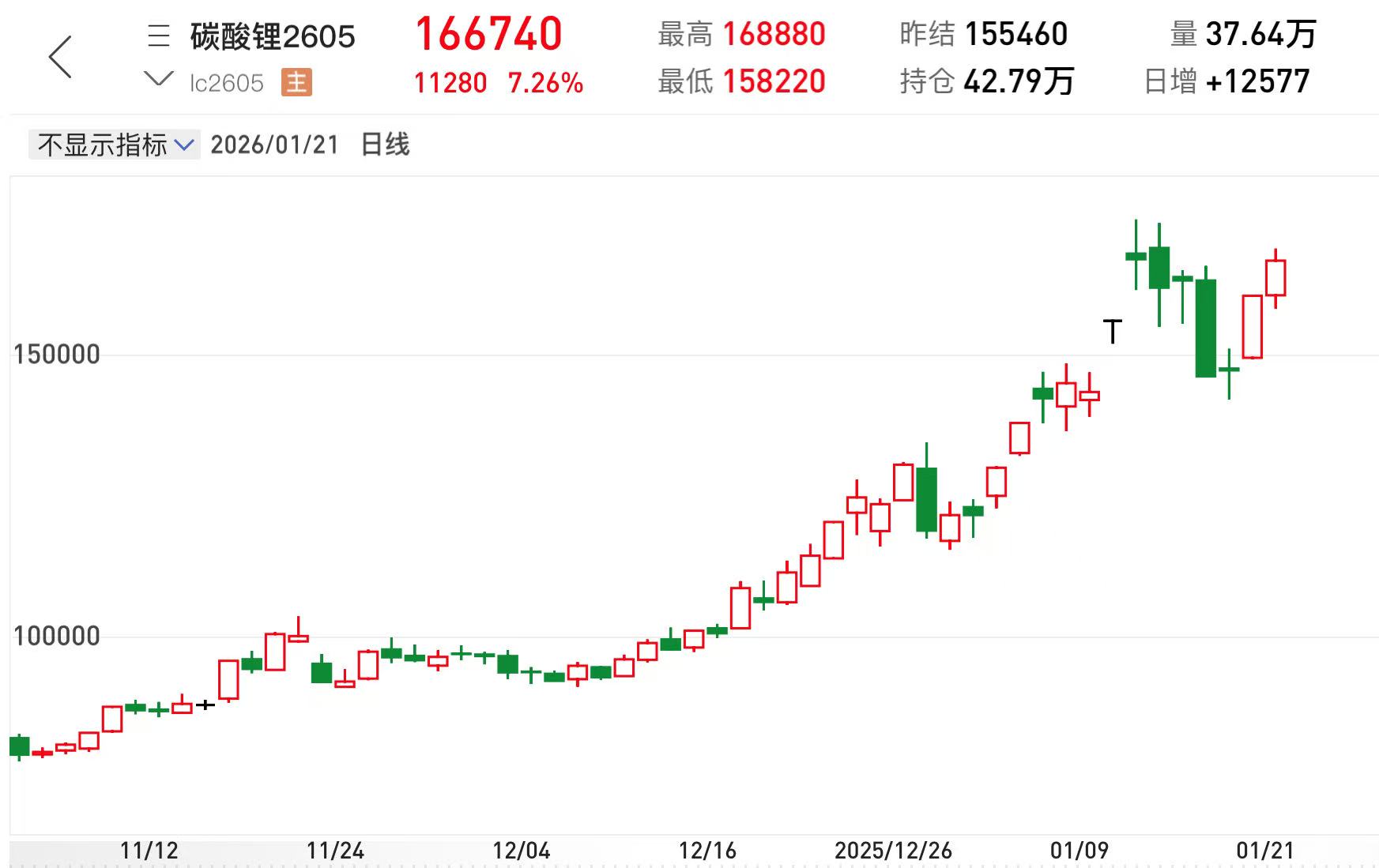 消息面上,近几日国内碳酸锂期货强势反弹。截至发稿,碳酸锂主力合约日内涨超7%,盘中一度突破16.8万元/吨。
