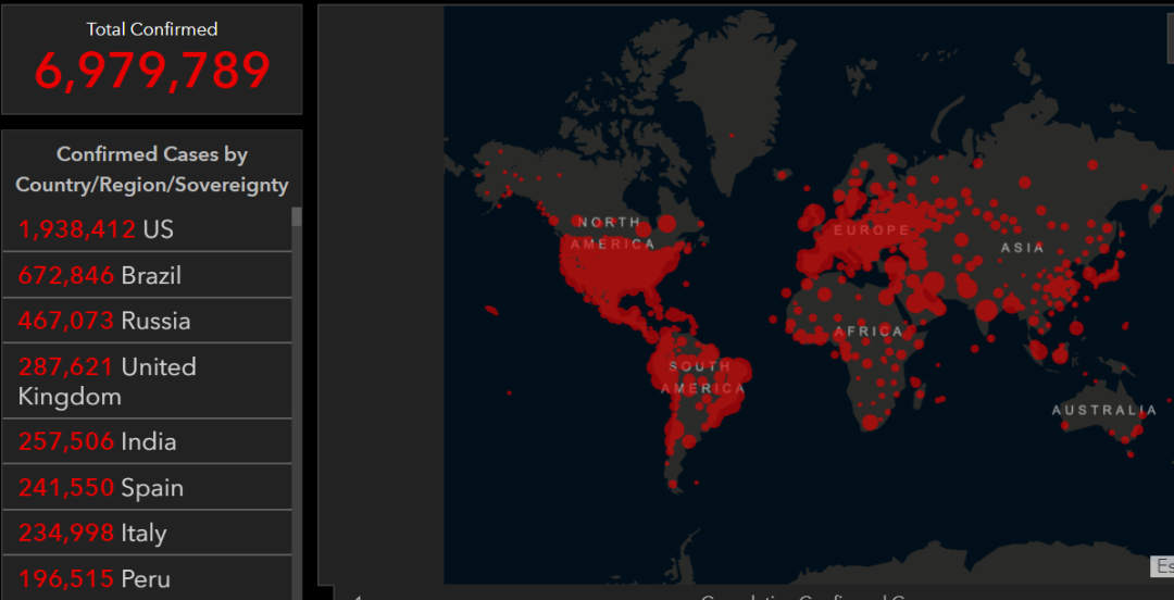 据约翰斯·霍普金斯大学最新数据统计,全球新冠肺炎确诊病例接近700万,累计死亡超40万。
