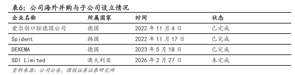 通过收购韩国的Spident和德国的DEKEMA等具有技术优势的海外企业,不仅增强了其在国际市场的竞争力,还进一步优化了其全球供应链。近期,公司还计划收购澳大利亚的SDILimited,进一步推动其在全球市场的扩张。