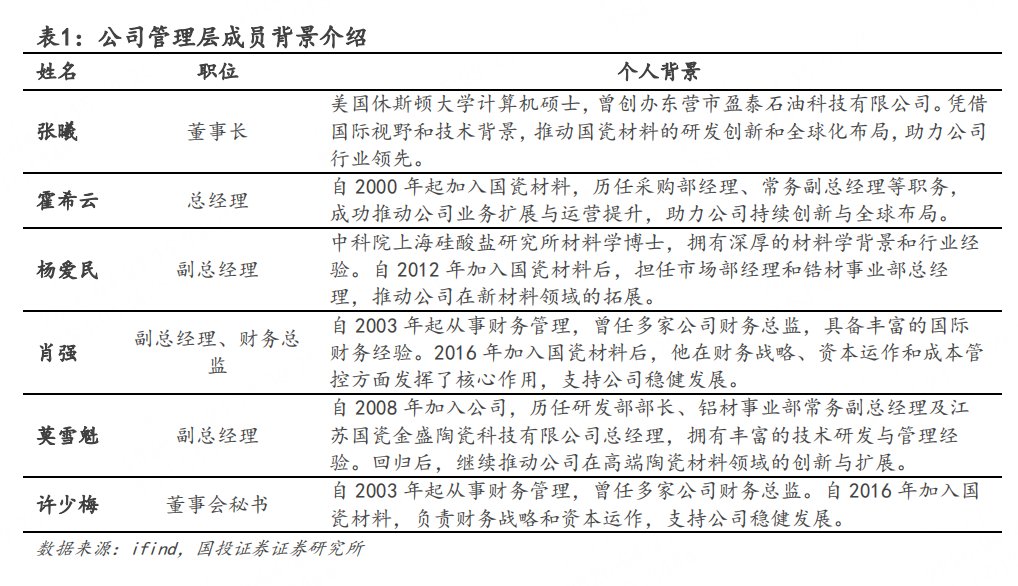 国瓷材料成立于2005年,现已发展为国内重要的高端功能陶瓷材料企业。公司主要从事高端陶瓷材料及制品的研发、生产与销售,业务涵盖电子材料、催化材料、生物医疗材料、新能源材料、精密陶瓷及数码打印等板块,产品广泛应用于电子信息与通信、汽车及工业催化、生物医疗、新能源汽车、半导体、建筑陶瓷和光伏等领域。