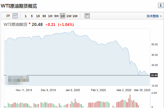 国际油价又崩盘了。WTI原油周一跌破20美元/桶,最终收跌6.6%,收报20.09美元/桶,创2002年2月以来收盘新低,日内最低触及19.27美元/桶。布伦特原油收跌9.2%,盘中最大跌幅达12.7%,收报22.63美元/桶,同创2002年来新低。