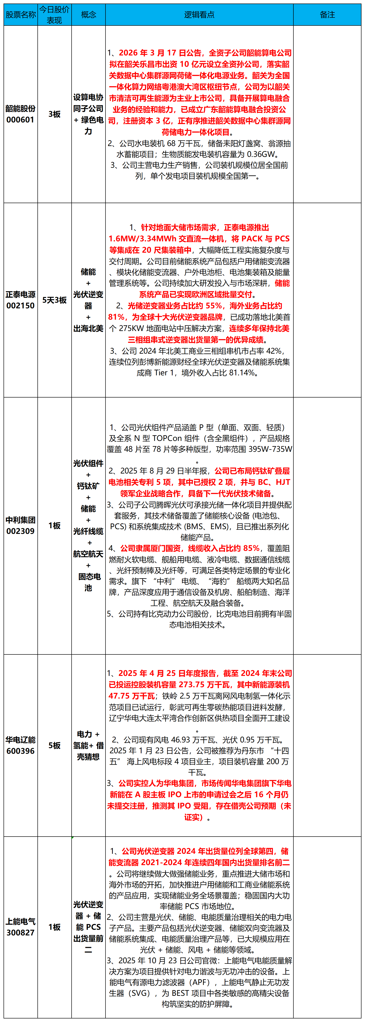 正泰电源002150、中利集团002309、上能电气300827、