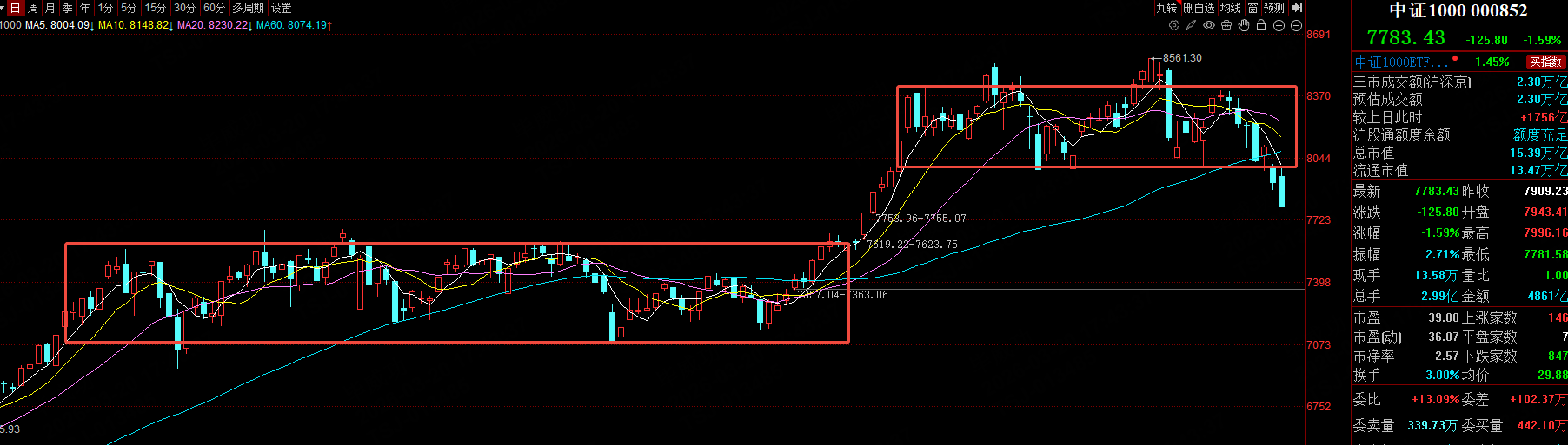 之前我天天提醒,中证1000和中证2000不能破位,一旦破位就要回踩去年8-12月的平台支撑了。这两个指数破位后,果然量化出现了踩踏效应。因为对于量化来说没有【亏得太多了,割不动】这么一说。机器是非常冷静的,当他们知道市场箱体破位要跌到下一个平台支撑的时候,他们会毫不犹豫割肉。