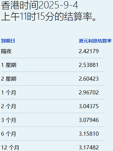 9月4日,港元拆息全线轻微反弹,而与楼按相关的一个月拆息终止4连跌,报2.96702%,升11.738基点,是9月2日后最高;反映银行资金成本的三个月拆息报3.07946%,升6.767基点。