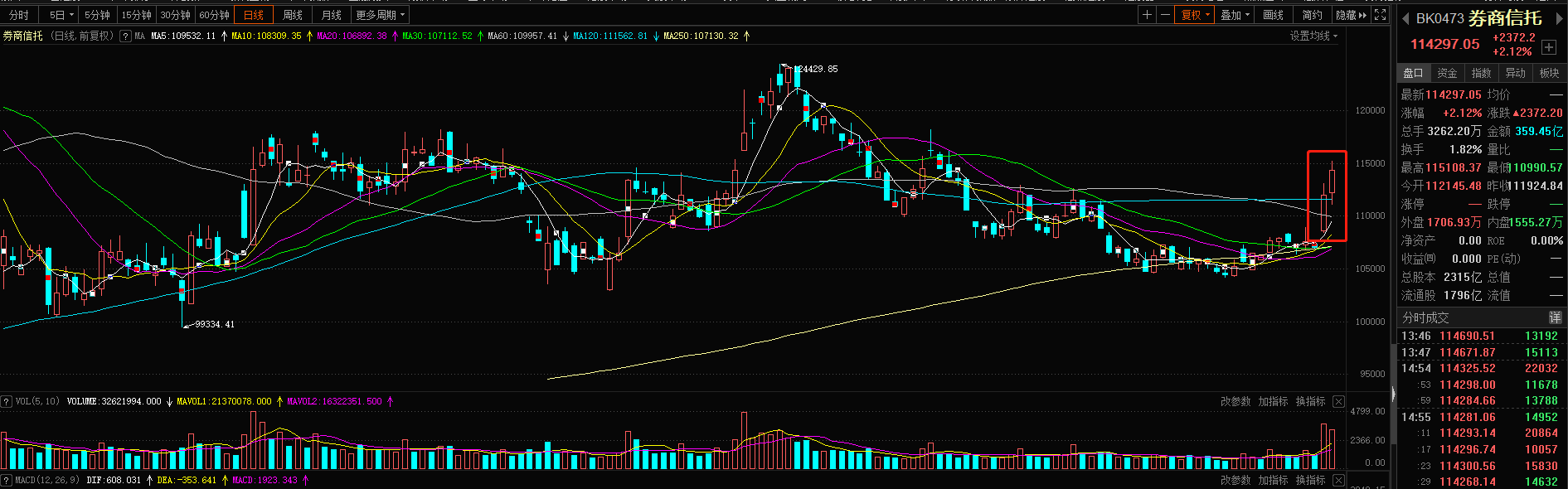 从行情来看,近几日持续上涨的行情以券商信托等金融股带动为主。上周五,券商指数大涨近5%,今日板块再度大涨超2%。个股方面,中信建投、南京证券强势两连板。