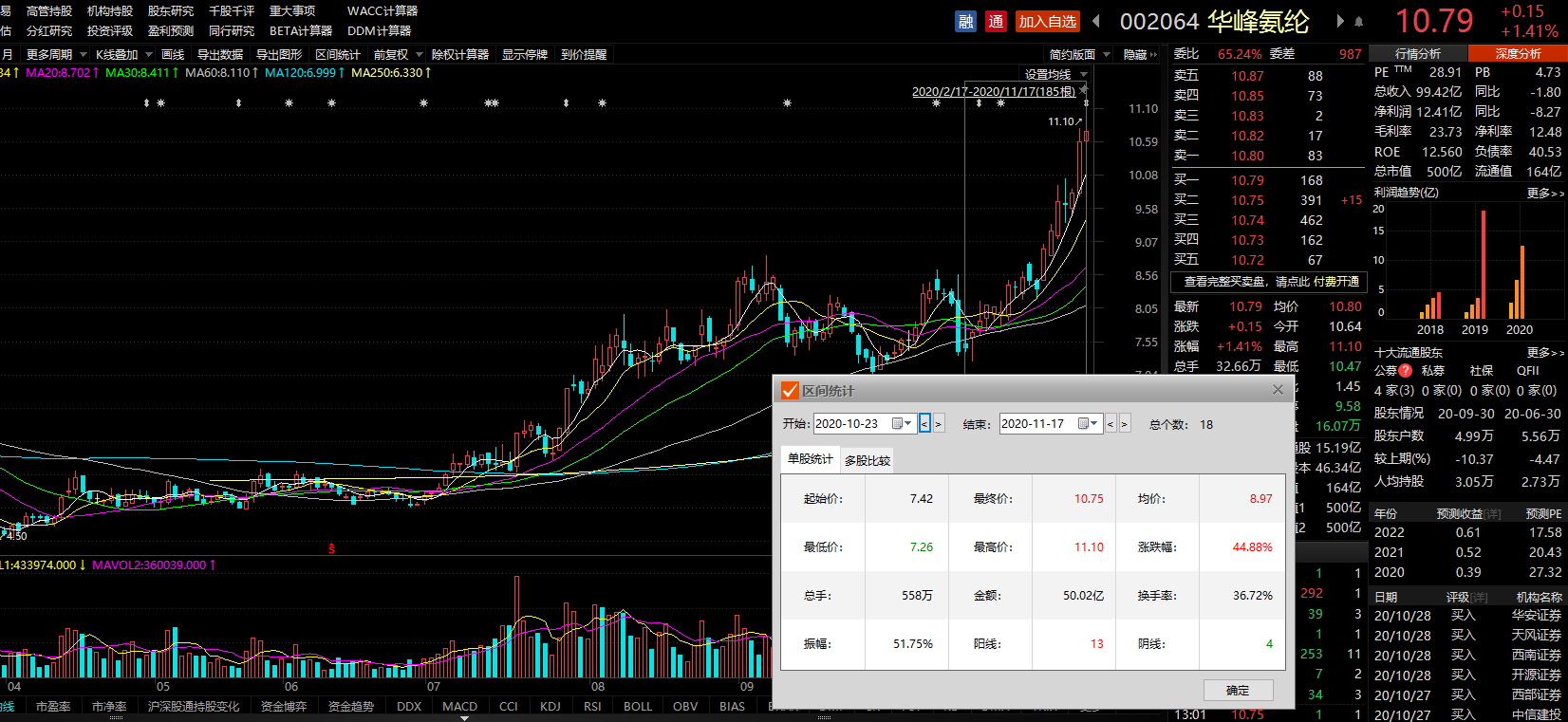 受此影响,行业头部供应商股价直线上冲。其中行业龙头华峰氨纶的股价在短短一个月之内,就上涨了45%。