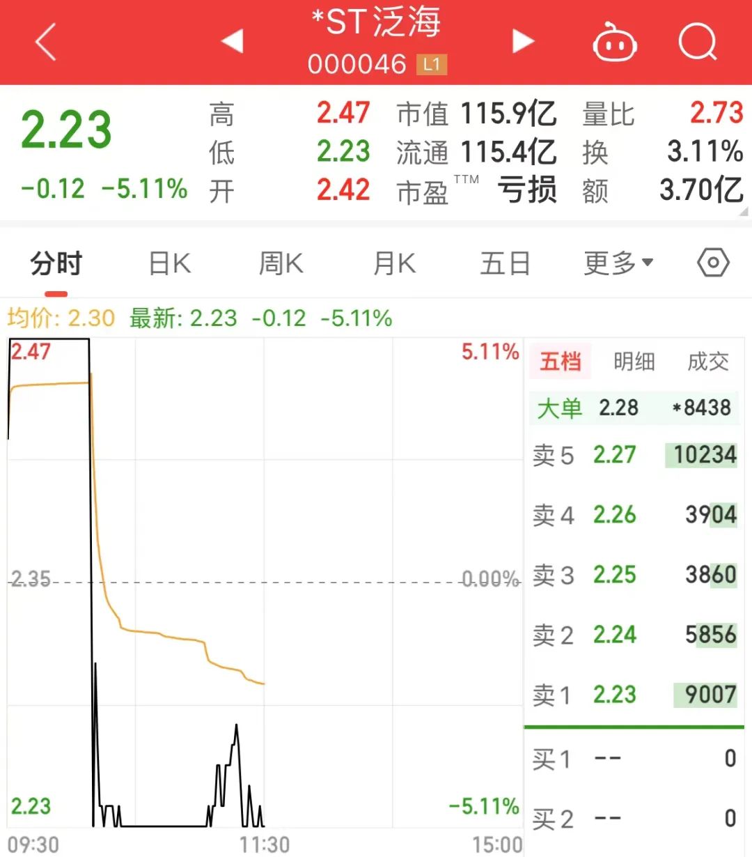 *ST泛海上演“天地板”行情,早盘股价一度涨停,但随后迅速跌停;截至收盘,该股成交额3.7亿元,振幅达10.21%,换手率3.11%。