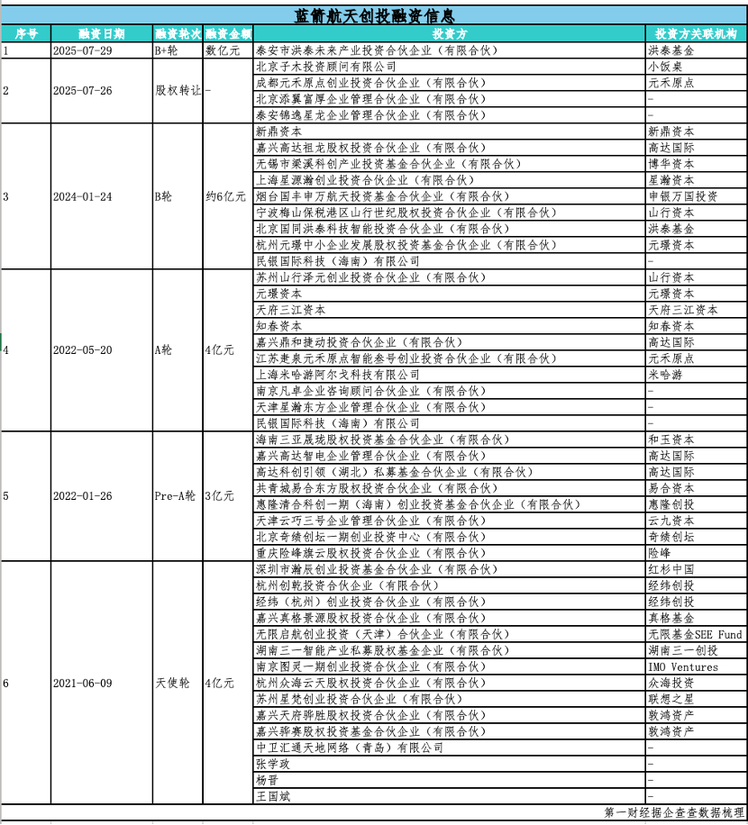 第一类是政府与政策性资本。以蓝箭航天为例,2024年2月,国家产业投资基金(SS)向蓝箭航天增资4.5亿元。10个月后,2024年12月,国家制造业转型升级基金股份有限公司入股,增资金额高达9亿元。此外,来自北京、上海等科创高地的区域国资平台也积极参与,如上海浦东科技创新投资基金合伙企业(有限合伙)、北京经济技术开发区产业升级股权投资基金(有限合伙)也现身蓝箭航天的股东名单行列。