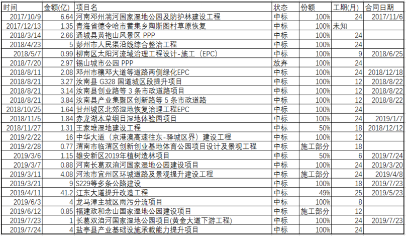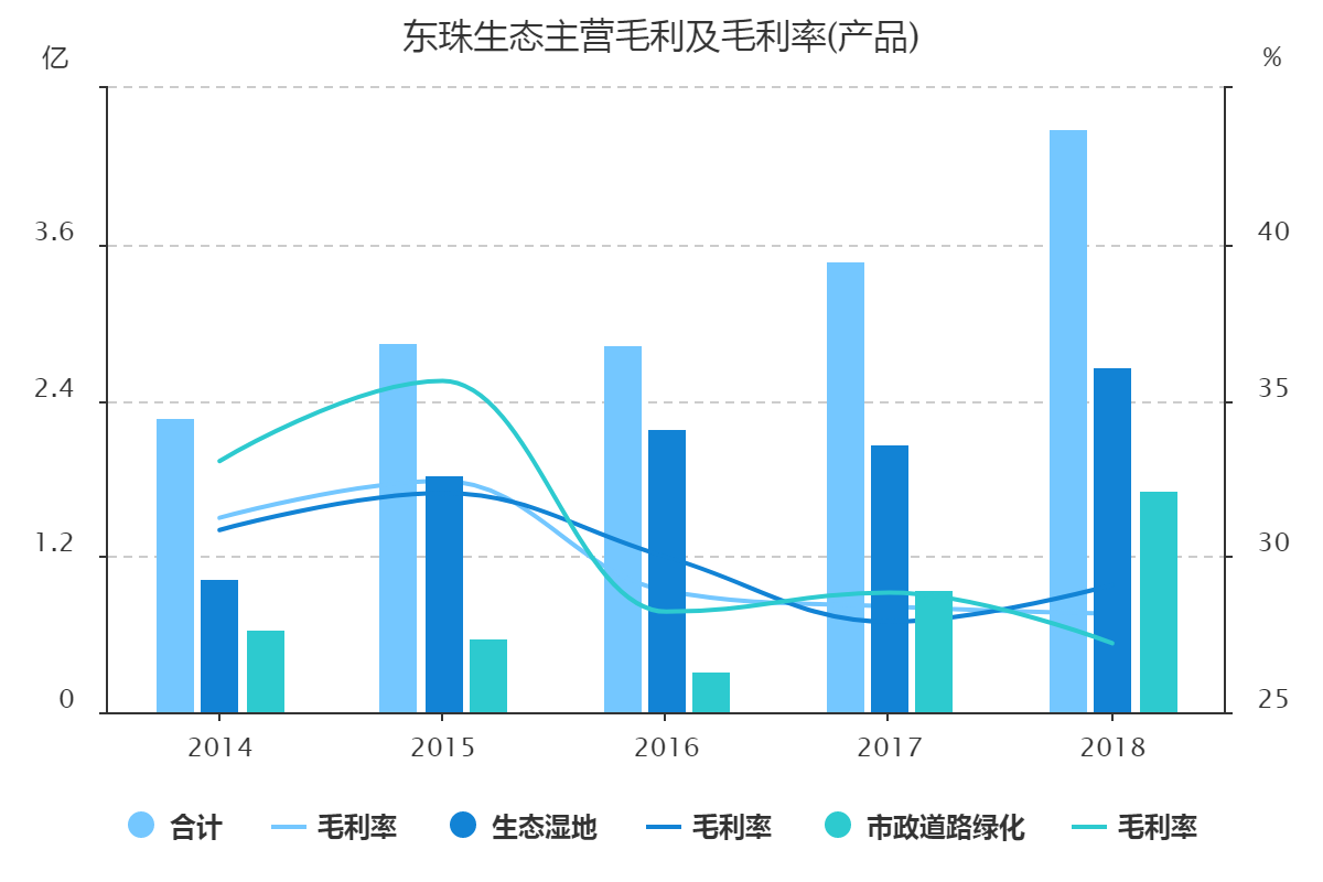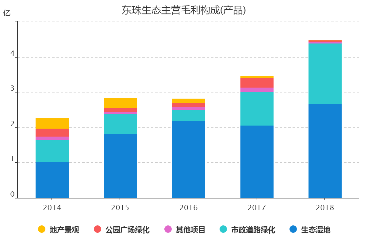江苏东珠景观股份有限公司是湿地生态修复领域的行业龙头,拥有苗木种植、生态景观设计、生态修复与景观工程建设、景观养护完整的生态景观产业链。从主营构成看,公司主要收入和毛利来自生态湿地与市政道路绿化项目,并且以回款优秀的生态湿地项目为主。生态湿地业务毛利占比维持在60%左右,2018年该占比为59.45%,市政道路绿化占比为38.26%。在园林类项目中,生态湿地项目获国家支持力度最大,特别是东珠生态聚焦的国家湿地项目,是由中央专项拨款,资金保障力度大。