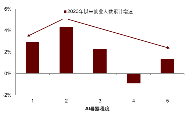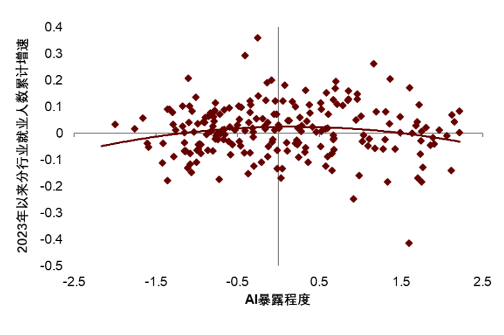 图表6:AI暴露度与分行业就业相关性不强