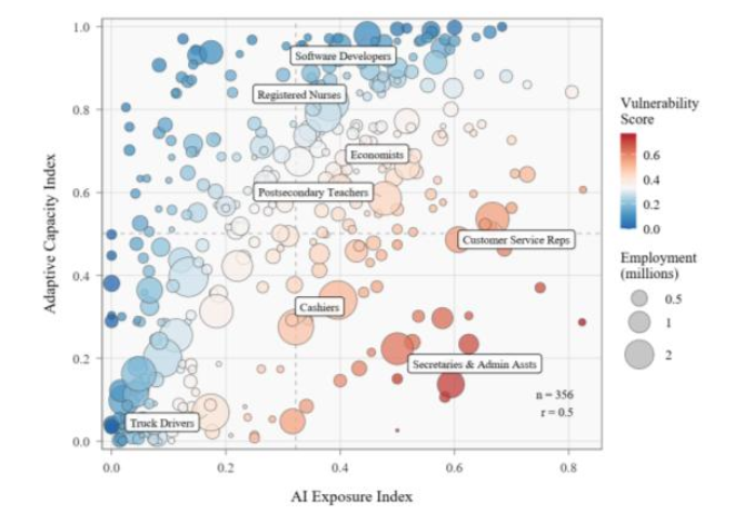 图表9:AI暴露程度与就业者适应能力呈正相关