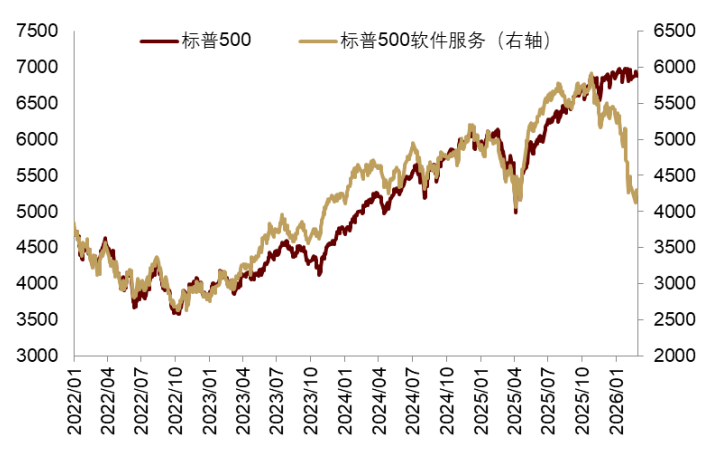 图表5:2025Q4以来美股震荡,软件板块下跌