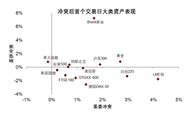 当前中东地缘风险加剧,与全球流动性和AI恐慌交织,前者是结构性的,而后两者有望逐渐修复,通过资源自足和生产力提升来夯实国家安全仍是投资主线。2月28日,以色列和美国突然对伊朗发动军事打击,中东局势骤然升温,全球资产进入避险模式,黄金、原油和美元指数上涨。美国近期在委内瑞拉和伊朗的军事行动对资产的影响有相似点,也有不同点。相似点在于:1,由于委伊在能源上的重要性,原油价格均出现大幅上涨;2,市场均出现避险情绪,黄金价格上涨;3,由于美国在极短时间内取得军事行动的重大成果,美股均出现上涨。不同点在于,由于伊朗实力相对更强,且地理位置更为重要,美伊冲突后市场避险情绪明显更强,体现在除中美外,全球股市普跌,美元指数上涨。考虑到美委冲突持续时间较短,涟漪效应不强,后续美以伊冲突的扩散性和持续性将是对大类资产影响的重要跟踪因素。若冲突持续推动油价上涨,将推升美国滞胀概率和美国资产风险。