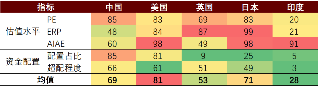 图表28:全球股市估值与资金配置历史分位数情况