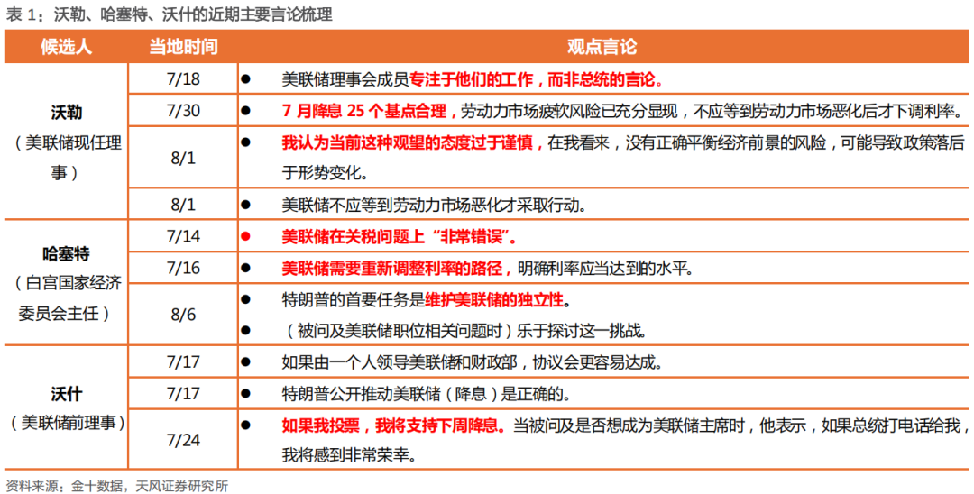 近期被提名成为美联储理事的米兰,可能成为“黑马”。米兰是对等关税的倡导者,利率问题上偏鸽派。米兰主张通过缩短理事任期、允许总统罢免理事等方式,来削弱美联储的独立性,因此被广泛质疑会破坏央行信誉。