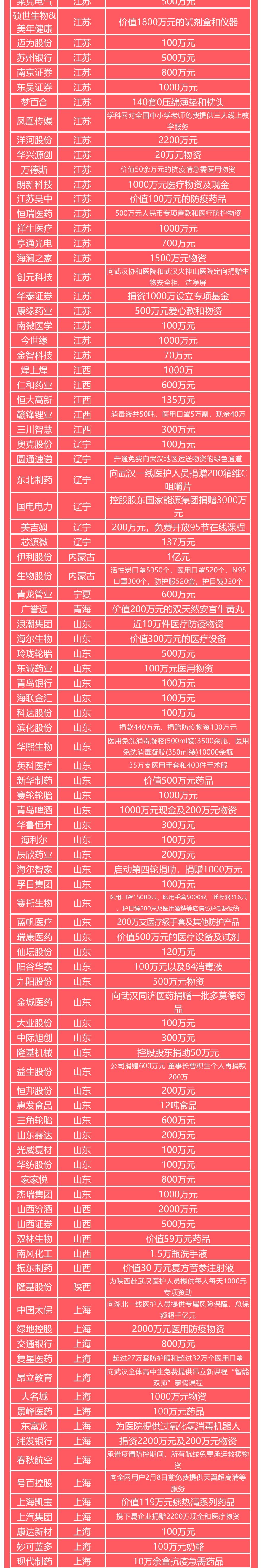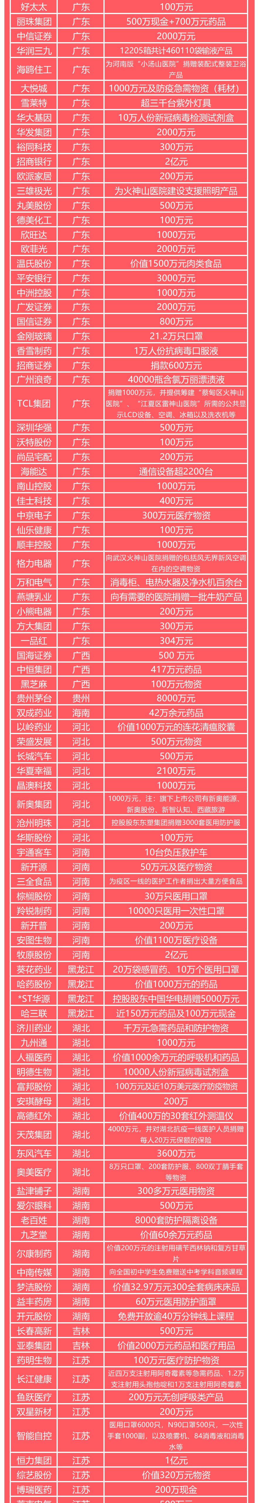 有钱出钱,有力出力,有物出物,是上市公司驰援疫情的标准注脚。