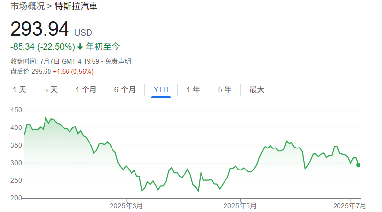 周一,特斯拉股价出现回落,收盘下跌6.79%,至每股293.94美元。今年以来的跌幅更是达到22.5%。