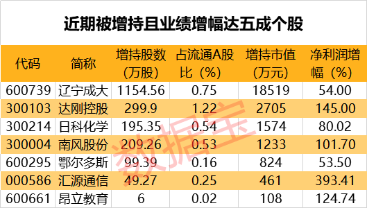 最新数据显示,近十个交易日有32家上市公司被增持,增持股数合计1.65亿股,增持市值达10.42亿元(增持股份变动以公告中变动截止日为准)。其中内蒙华电被增持的股数最多,达2550万股,占流通A股比例为0.44%;辽宁成大被增持的市值最多,达1.85亿元;而增持股数占流通A股比例较高的公司为新元科技,增持比例高达2.19%。