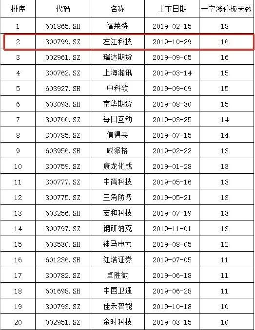 左江科技为今年以来创业板新股上市连续涨停最高,在今年内所有新股中仅次于福莱特的18个涨停。