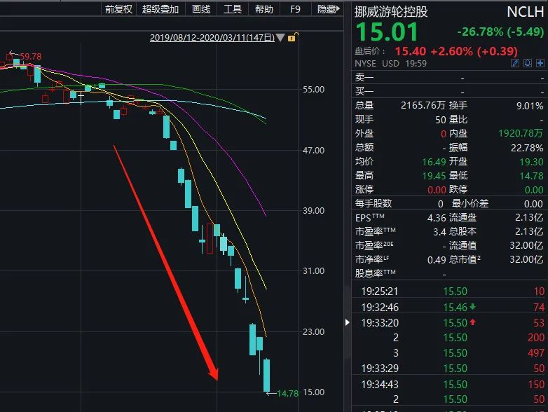 邮轮股是重灾区。挪威邮轮控股再跌26.78%,本轮下跌跌幅已经超过70%。能源股和航空股也跌幅惨重,波音跌超18%,创逾2年以来新低。