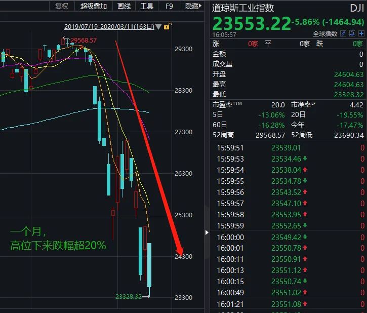 北京时间昨晚,事态就已经不一般,美国首都华盛顿进入紧急状态;美股跌惨了,10年长牛的美股跌入熊市!连日在ICU和大保健蹦极的美股,昨晚又进入ICU,三大股指全线暴跌。道琼斯指数跌幅近6%,又跌去近1500点,波音股票暴跌18%。