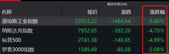 美股三大股指再度集体大跌。道指跌近1500点,自今年高点累计回落逾20%,进入技术性熊市。截止收盘,道指跌5.86%,标普指数跌4.89%,纳斯达克指数跌4.70%。