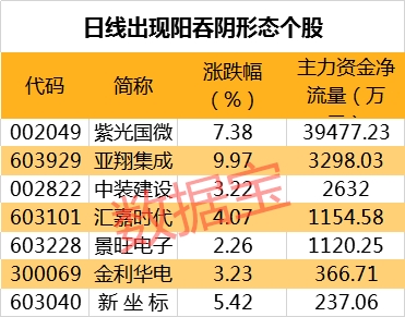 7股出现阳吞阴形态!紫光国微资金流入近4亿