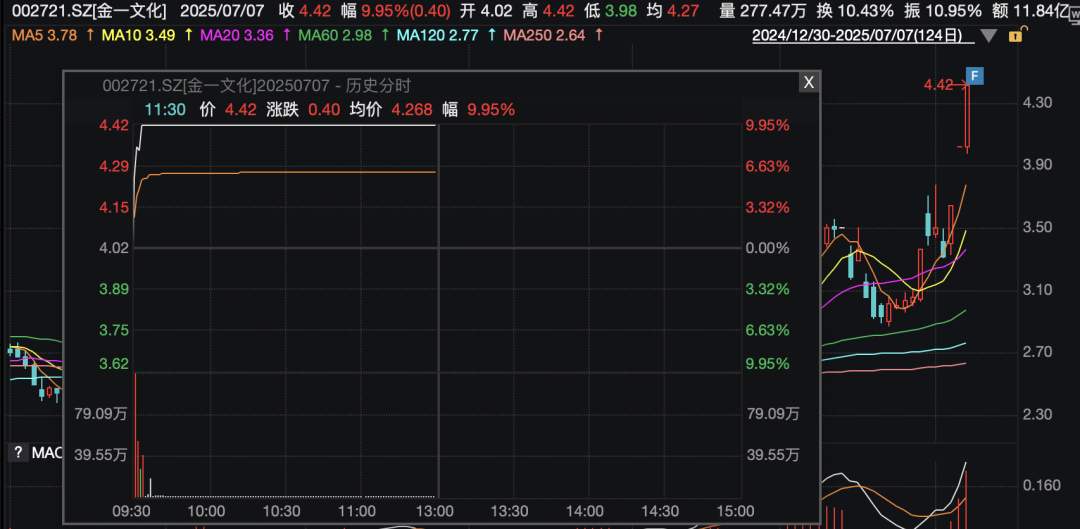 金一文化也连续第3个交易日盘中涨停。公司昨晚发布股票交易异常波动公告称,受客观条件限制,公司无法掌握股市变动的原因和趋势,公司提醒投资者注意股价波动及今后股市中可能涉及的风险。