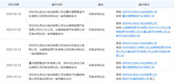 天眼查显示,自2019年6月以来,比克动力已先后对重庆理想智造汽车有限公司、众泰新能源汽车有限公司长沙分公司、众泰新能源汽车有限公司、永康众泰汽车有限公司、众泰汽车股份有限公司、国宏汽车集团有限公司等车企起诉。在这些被告名单中,以拖欠货款6.21亿元的众泰系最为引人关注。
