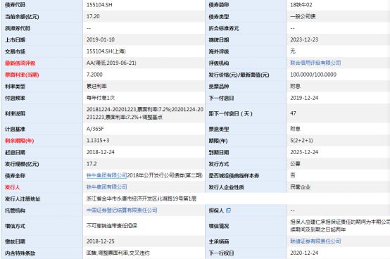 “18铁牛02”为公募债,发行规模17.2亿元,期限2+2+1年,起息日2018年12月24日,当期票面利率7.2%。值得注意的是,“18铁牛02”在募集时设置了交叉违约条款,这也就意味着,如果铁牛集团及其合并范围内子公司的债务一旦出现违约,规模高达17.2亿元的“18铁牛02”将触发交叉违约。